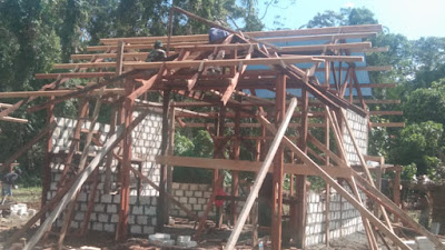 Seperti yang saat ini dilakukan warga Kampung Dorba bersama Satgas TMMD, yang melaksanakan proses pemasangan gelagar atap rumah Pastori pembangunan gereja di Kampung Dorba, Sabtu, (19/6/21).