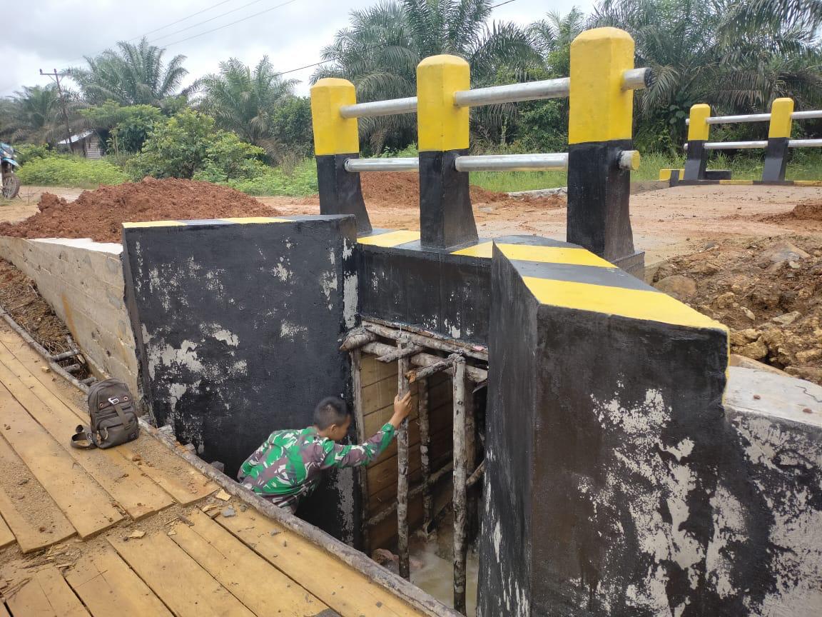 Untuk sasaran fisik sudah mulai terlihat dan hampir selesai seperti jembatan sehingga Anggota Satgas harus membersihkan material-material bekas jembatan seperti kayu dan sisa-sisa paku yang Sudah tidak terpakai di sekitar pembangunan jembatan. Terlihat Anggota Satgas membersihkan sekitaran jembatan agar nantinya sebelum penutupan TMMD 111/Kodim 1202 Singkawang sudah bersih semua dari bekas-bekas material pembangunan.