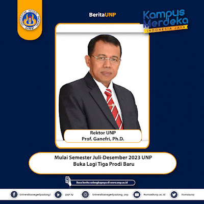 BIJAKNEWS.COM -- Universitas Negeri Padang (UNP) kembali buka tiga program studi baru untuk penerimaan mahasiswa baru mulai semester Juli-Desember 2023. Ketiga Prodi tersebut adalah Prodi S1 Bisnis Digital (Fakultas Ekonomi), S1 Teknik Elektronika (Fakultas Teknik) dan S2 Pariwisata (Fakultas Pariwisata dan Perhotelan). Kebijakan pembukaan Prodi baru tersebut sesuai dengan mekanisme pembukaan Prodi baru di lingkungan PTNBH UNP dengan tetap memperoleh akreditasi minimal dari BAN PT. Sebelumnya UNP juga sudah membuka Prodi S1 Ilmu Hukum dan Imu Komunikasi (Fakultas Ilmu Sosial), S1 Teknik Geologi (Fakultas Teknik), S1 Pariwisata (Fakultas Pariwisata dan Perhotelan), S2 Pendidikan Non Formal, S2 Pendidikan Khusus dan S3 Pendidikan Dasar (Fakultas Ilmu Pendidikan).
