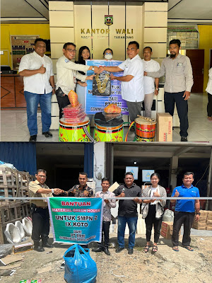 Dan yang ketiga adalah material pembangunan green house untuk SMP N 2, IX Nagari Banai, Kec IX Koto, Kab Dharmasraya, Sumbar. Material yang diberikan berupa Baja Ringan 48 pcs, Reng Baja, Baut 2 kotak (2000 pcs), Plastik UV 200 micron 50 meter, Screen Net Mesh dan Paranet 50 m yang diserahkan pada Kamis dan Jumat, 25 dan 26 Mei 2023.